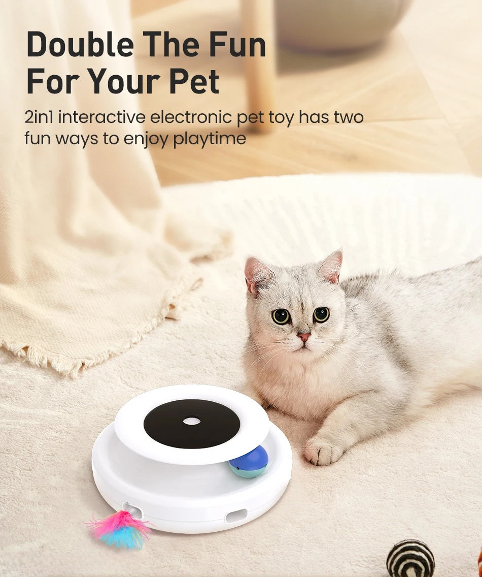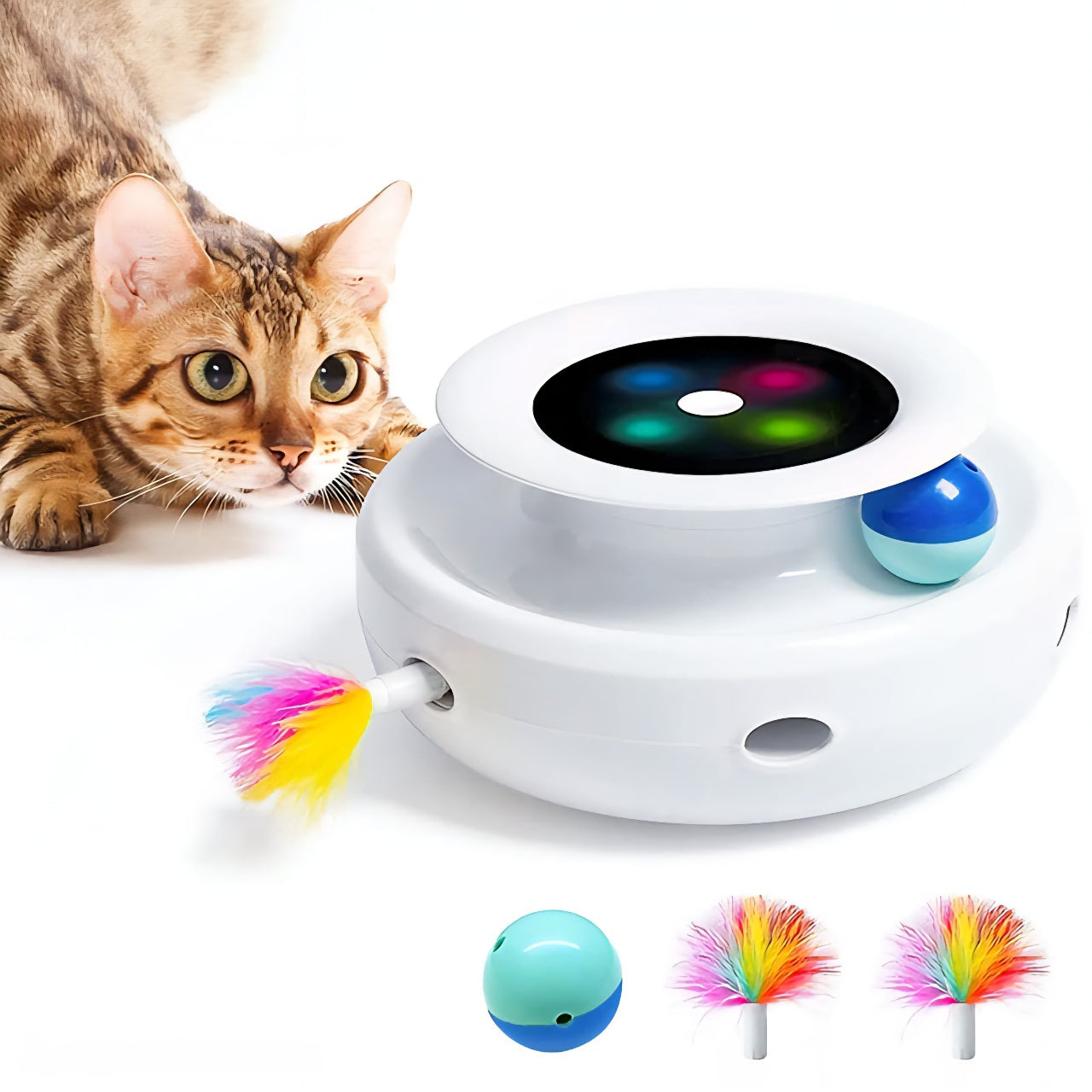 2 in 1 Smart Cat Teaser Toy – Automatic Feather & Light Fun Ball Pet Entertainment System